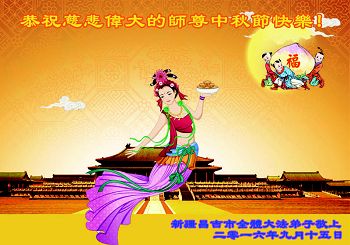 新疆维吾尔自治区昌吉回族自治州昌吉市全体大法弟子敬上 湖南省郴州市被非法关押的大法弟子恭祝慈悲伟大的师父中秋快乐!