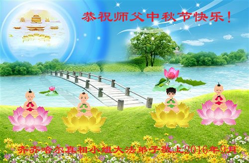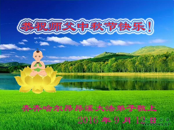 祝师尊中秋节快乐! 弟子今后会更加精進,做好三件事,不给自己留下遗憾,圆满随师还。 黑龙江省齐齐哈尔大法弟子 2016年9月14日 黑龙江齐齐哈尔市大法弟子祝师父中秋节快乐!