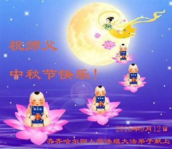 中秋节到了,弟子在此跪拜遥祝师尊中秋节快乐!感恩师尊慈悲救度弟子与众生!在师尊用巨大承受延续来的时间里,弟子一定珍惜点点滴滴的时间,实修自己,去掉执着,多救人。 黑龙江省齐齐哈尔三位大法弟子恭祝师尊中秋快乐!