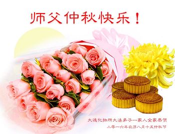 慈悲的师尊您好!感恩师尊慈悲救度!拜谢师尊时时对弟子的呵护!弟子们一定听师尊教导,多学法,多救人,做好三件事,圆满随师尊还! 辽宁省大连化物所大法弟子一家人祝师尊中秋快乐!