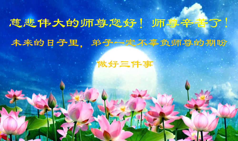 弟子会以今天为新的起点,做好三件事,奋力跟上师尊的正法進程,不负师尊的慈悲苦度。 辽宁省大连大法弟子恭祝师尊中秋快乐!