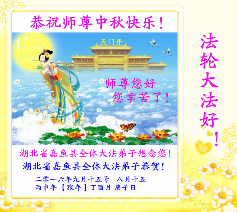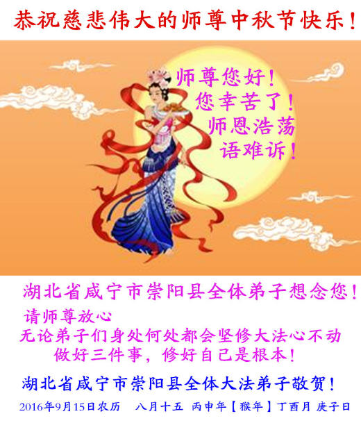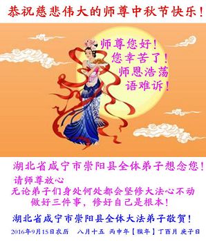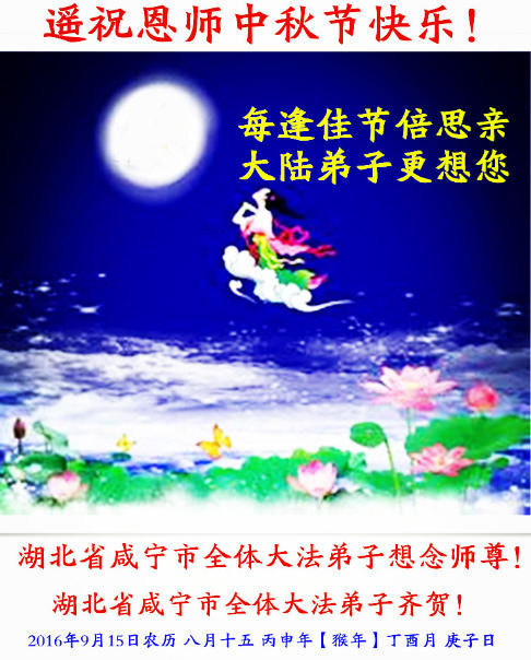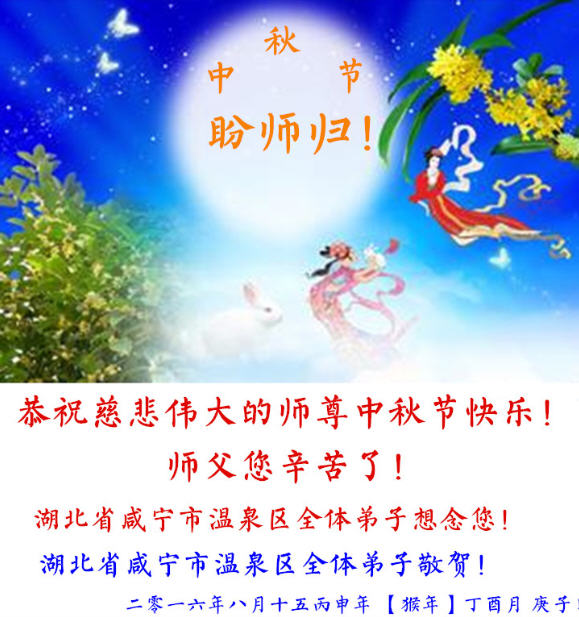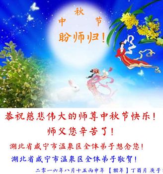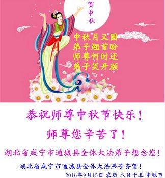 天门市大法弟子恭祝伟大的师尊2016年中秋节愉快!
