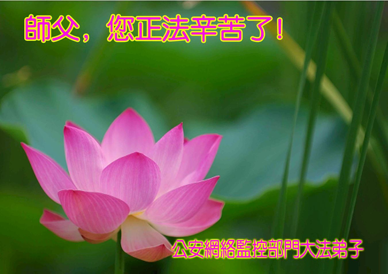 师父:中秋节好!每逢佳节倍思亲!远在东方的中国大陆大法弟子中秋佳节向师父问好了!师父辛苦了!师父为了宇宙平安,挽救全人类,付出极度辛劳!为了大法弟子安全看护着每个大法弟子。在这里向师父致以崇高敬意,师父辛苦了!某年前,金莲在街上发大法真相资料救世人,被一警察抓住,警察要打电话,金莲心里想打不通,警察的电话真的打不通。金莲心里说:“请师父救我”。这时从人群里走出一个年轻人对警察说“你不信就算了,还抓人,我命令你把人放了。”警察松了手,金莲安全回到家中。另一同修被抓到派出所,不久也回到家中。真是:“弟子正念足 师有回天力”谢谢师尊救度之恩!师父宇宙正法進入尾声之际,弟子要做好师父要求的三件事,回报师父救度之恩!再一次敬祝师父中秋快乐! 公安网络监控部门大法弟子恭祝师尊中秋快乐!