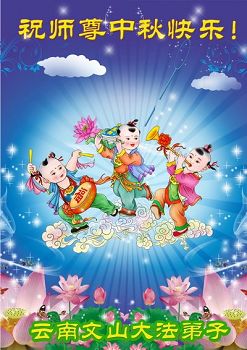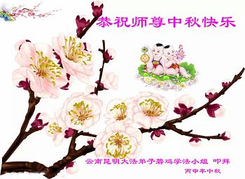 师父您好!大陆的弟子想念您!千言万语无法表达我们对师父的感恩。前方的道路艰险异常,我们只有信师信法才能走得过去。感谢师父对我们一路的呵护,我们唯有按照师父的要求去做才是师父的最大欣慰。 云南昭通市全体大法弟子恭祝师尊中秋节快乐!