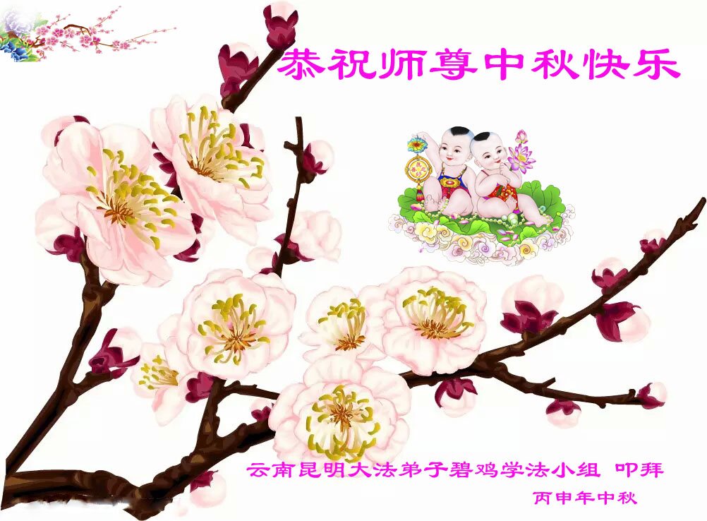 弟子们一定努力做好三件事,奋力精進,修好自己,正念正行,多救人! 昆明市大法弟子恭祝师尊中秋节快乐!