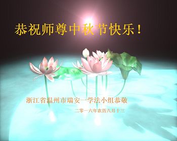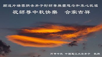 新疆金三角地区的大法弟子恭祝慈悲伟大的师尊中秋节快乐!新疆的弟子十分想念师尊,一定做好三件事,抓紧救人。 浙江温州市瑞安一学法小组恭祝师父中秋节快乐!