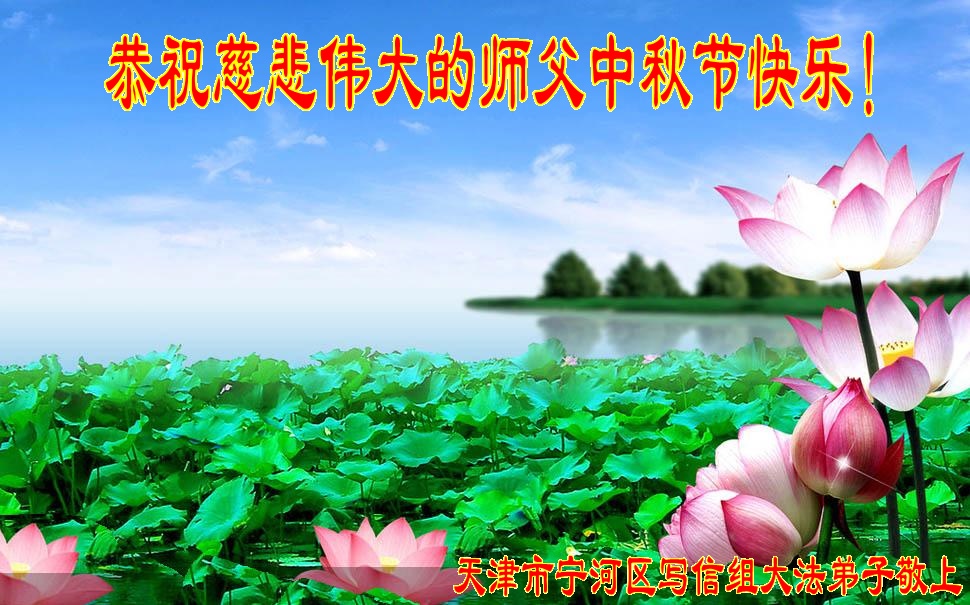天津大法弟子恭祝慈悲伟大的师尊中秋节快乐! 又是一年的中秋节,在您的艰辛付出下,人们又幸运的度过了一年。每当想到您的艰辛和还有那么多的人浑浑噩噩,弟子心中都非常难过,愿世上每一个人都感念我们师父的浩荡佛恩! 天津市西青区大寺镇全体大法弟子祝慈悲伟大的师尊中秋快乐!