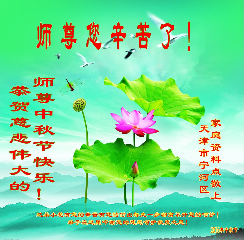恭祝慈悲伟大的师父中秋节快乐! 天津河东区大法弟子叩拜师尊 天津市宝坻区大法弟子恭祝师尊中秋快乐!