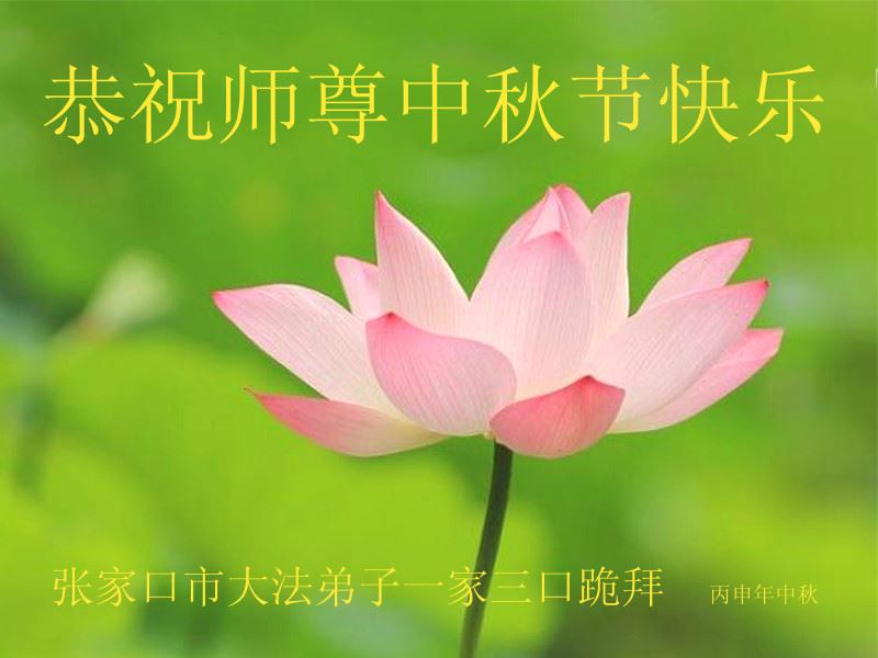 河北张家口大法弟子代表我们一家四口人向慈悲伟大的师父问好!恭祝慈悲伟大的师父中秋节快乐!谢谢师父对弟子的救命之恩!