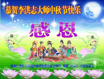 今天是中国的传统节日——中秋节,在这月圆团圆之日,我很高兴能够与全世界的大法弟子一起恭祝师尊节日快乐!感激师尊的慈悲救度! 我是河北省曹妃甸区一名大法弟子,虽然身在中国大陆的一个小小的角落,但幸运的是,师尊没有遗忘我,让我于1995年春天走進了法轮大法的修炼,紧跟师尊在正法的航程中走过了二十一个年头。从九九年七月邪共魔头开始迫害法轮功至今,我依然信念坚定的在大法中修炼,稳健的做好师尊交代的三件事! 每天打开明慧网,看到全世界的大法弟子在各个国家的公园、景点、中国驻外领事馆前的助师正法的震撼场面;看到那么多的全世界不同肤色的众生静静的聆听大法弟子真诚、耐心讲解法轮功真相、揭露中共恶党对法轮功残酷镇压的邪恶行径;看到众生明白真相后纷纷谴责中共恶党,在〈呼吁停止迫害法轮功、法办迫害元凶江泽民〉的征签表上签字,为自己和家人选择了美好的未来,等等,这一切的一切,让我的内心非常自豪与欣慰,因为我也是亿万正法时期大法弟子中的一员,也在中国大陆做着相同的事情:每天在真善忍宇宙大法的指导下修炼身心;向广大的中国民众讲解法轮功真相,救度今生今世的中国人;揭露中共恶党的邪恶本质,帮助明白真相的中国人退出恶党的一切组织,等等,在神圣的助师正法的征途上兑现着自己的史前誓约! 在法轮功的整个群体中,我们每个弟子都发挥着自己的一份力量。在这浊世的洪流中,在道德飞速下滑的今世,我们亿万大法弟子能够从中脱颖而出,不被尘世的各种各样的利益诱惑所带动,真正做到出淤泥而不染;能够克制自己,自觉主动的修心断欲去执着,真正的为他人着想;能够顶住世界上最邪恶的政权---中共邪*党-的残酷迫害,在一路讲真相、揭露中共欺世谎言中走过了十七年的正法路程。我们为什么能做到?因为我们有伟大的师尊传给我们的真善忍宇宙大法时时指导着我们的修炼、规范着我们的道德! 在这个世界上,任何一个人只要在大法中虔诚修炼,就会被大法彻底改变,洗去污垢,脱胎换骨,生命同化真善忍后就能進入新宇宙! 生在今世,幸运无比!此生此世此人身一定要珍惜!因为我们赶上了创世主在世间传创世的法---真善忍宇宙大法!我们是师尊选中的正法时期大法弟子!助师正法是我们史前的誓约!修好自己才能救度众生!才能兑现誓约!才能完成使命圆满随师回家园! 大法洪传世间二十四周年,亿万弟子紧跟师尊,救度了无量众生。弟子叩拜师尊!得救的众生感恩师尊!师尊的威德震撼寰宇!大法的法力容贯苍穹! 在这中秋月圆、人团圆的特殊时刻,我非常荣幸,能够和全世界的大法弟子在世界的各个角落里共同祝愿我们慈悲伟大的师尊中秋快乐!非常期盼在中国大陆与师尊一起共度中秋佳节的那一天早日到来! 隔洋遥拜,让这中秋的明月将我的祝愿与感激带给师尊! 为救苍宇众生,师尊分分秒秒都在奔忙!师尊您辛苦了!弟子们会将内心对师尊无限的思念化作勇猛的动力,更加精進,坚定的走好最后的正法修炼之路!让师尊多一份欣慰,少一份操劳! 请师尊接受弟子的诚挚祝愿! 在此,我也代表我的姐姐同修和妹妹同修以及我的所有家人恭祝师尊中秋快乐! 河北省曹妃甸区大法弟子敬上!合十 山西省太原大法弟子愿李老师中秋快乐!
