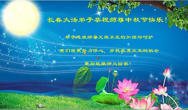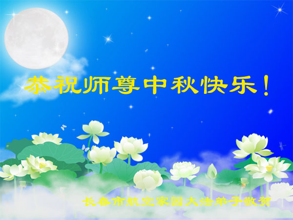 慈悲伟大的师尊您辛苦了! 弟子们唯有勇猛精進多救人,才能兑现誓约,报答师恩! 弟子跪拜师尊!弟子们想念师尊。每逢佳节倍思亲,相信与师尊团圆的日子会很近。 恭祝师尊中秋佳节快乐! 九台全体大法弟子敬上! 吉林长春大法弟子恭祝慈悲伟大的师尊中秋快乐!