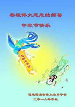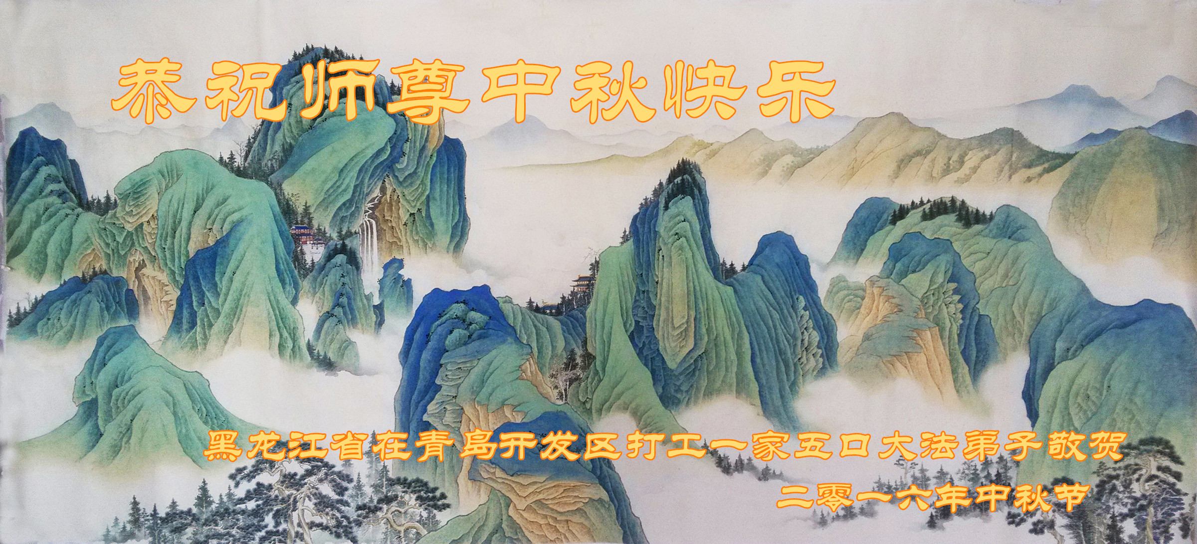 师父辛苦了,我们全家向师父问好!每逢中秋倍思亲,宇宙大法救众生;二十三载春秋路,不忘师父苦度恩!在今年中秋节到来之际,恭祝慈悲伟大的师父中秋节快乐! 我们牢记师父的教导,我们走在神的路上,努力做好三件事,不要松劲,一定要做得更好。精進,再精進! 二零一六年九月十二日 吉林省临江市大法弟子恭祝师父中秋节快乐!