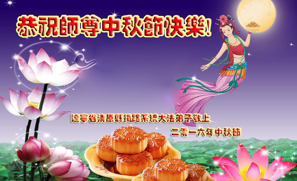 大连庄河一家三口大法弟子恭祝师尊中秋节快乐,师父您辛苦了! 辽宁省清原县铁路系统全体大法弟子及家人恭祝师尊中秋节快乐!