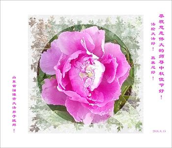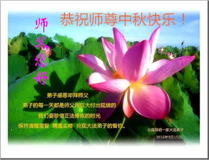 【明慧网二零一六年九月十五日】 山东省淄博市大法弟子恭祝慈悲伟大的师尊中秋节快乐!