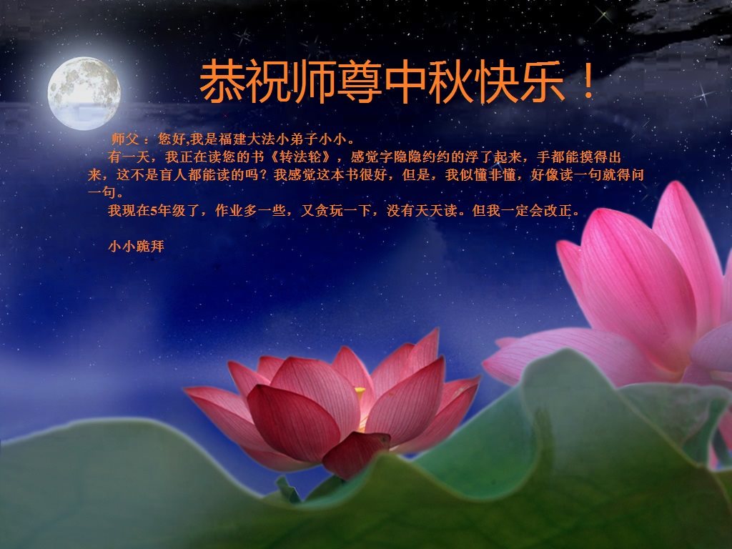 吉林省龙井市大法弟子恭祝师尊中秋快乐! 福建大法小弟子小小恭祝师尊中秋快乐!