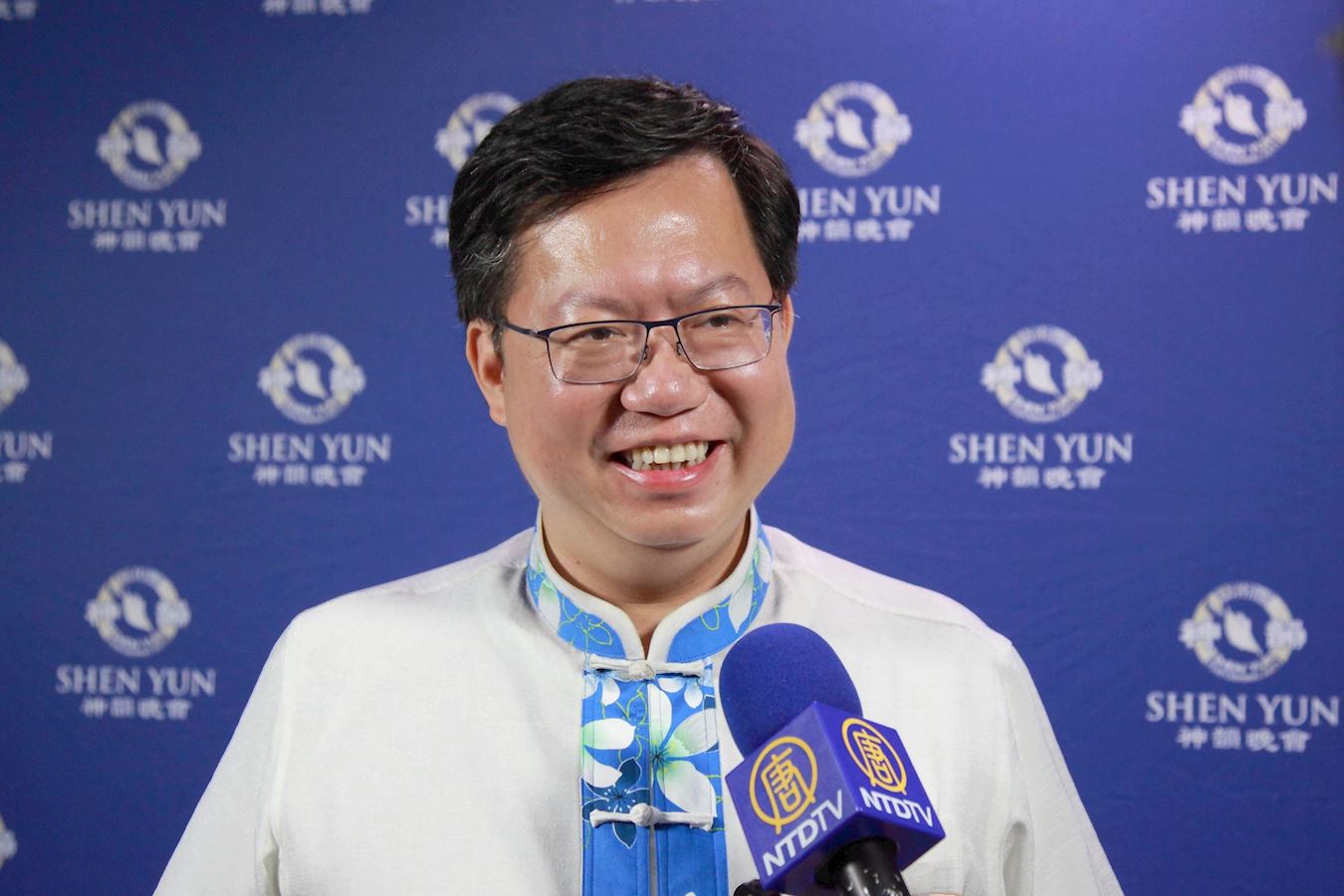六都之一的桃园市市长郑文灿出席观赏了台湾的首场演出,他高兴地说:“我来得很有收获”。他赞扬神韵交响乐团乐曲首首精彩、引人入胜,预期这样的演出能引领新的音乐潮流,让大家喜爱,并预祝台湾其它十一个城市的巡回演出也能场场爆满。 郑文灿表示,神韵交响乐团的演出东西合璧,东西方旋律结合度相当高,整体表现相当优质与多元,“大家熟悉的交响乐团是西方的,但神韵是融合中西所以演出的曲目,不管是中国的、西方的、台湾的,每一首曲子都很精彩,我觉得今天来这边是一个很好的音乐飨宴。” 文化局长:二十一世纪的良药