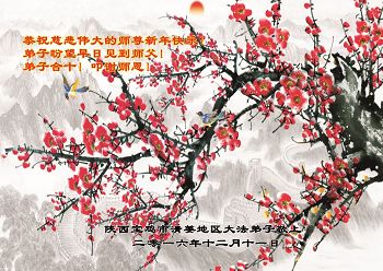 【明慧网二零一七年一月二日】在2017年元旦到来之际,海内外法轮大法弟子精心制作贺卡图片,向师尊表达深深感恩,敬贺师尊元旦快乐!