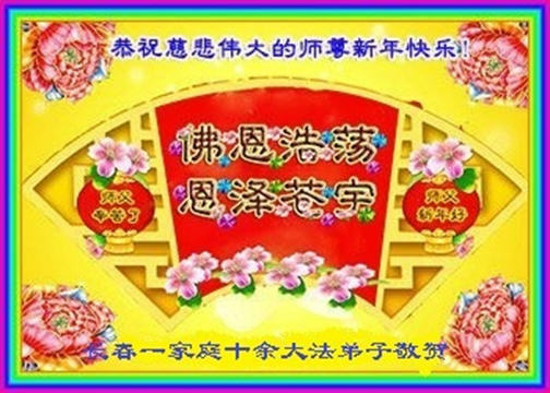 得法12年来,时刻沐浴在法光之下,感恩师尊的慈悲救度!弟子唯有精進、再精進,做好三件事,才不负慈悲伟大师尊的苦度! 吉林省长春一家庭十余大法弟子恭祝慈悲伟大的师尊新年快乐!