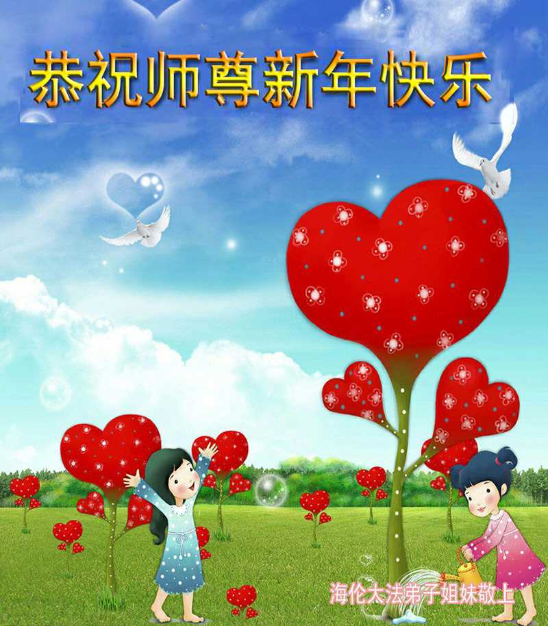 黑龙江省绥化市海伦市大法弟子姐妹俩恭祝慈悲伟大的师尊新年快乐!