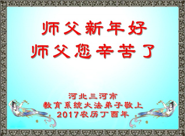 河北省廊坊市三河市教育系统大法弟子恭祝师父新年好!师父您辛苦了!