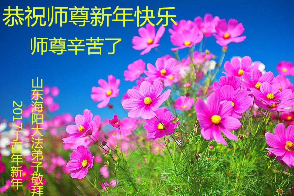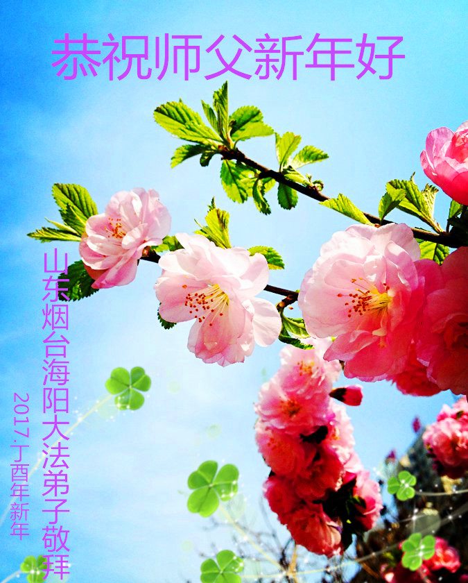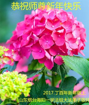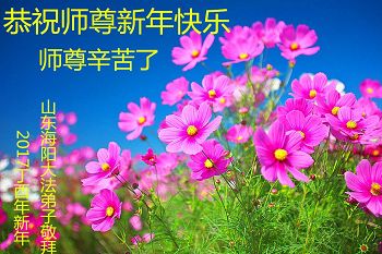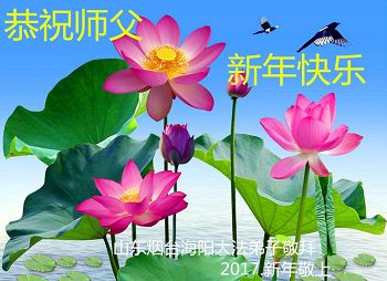 师父新年好! 在二零一七年中国新年到来之时,中国大陆河北省辛集市农村大法弟子给我们慈悲伟大的师父拜年了!我们都想念师父,期盼和师父早日团圆。 山东省淄博市淄川区农村大法弟子恭祝慈悲伟大的师尊新年快乐!