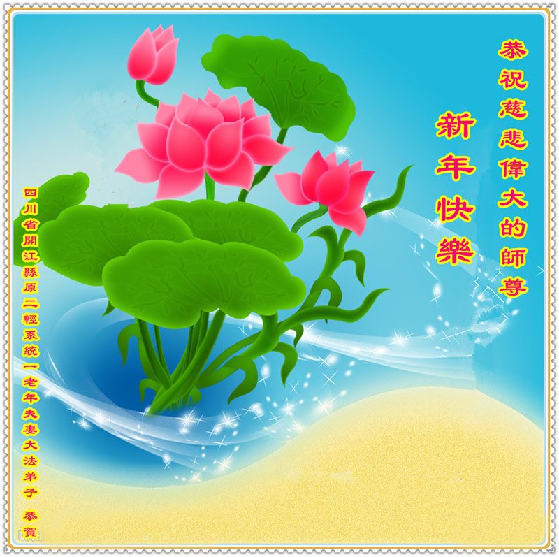 四川省达州市开江县原二轻系统一老年夫妻大法弟子恭祝慈悲伟大的师尊新年快乐!