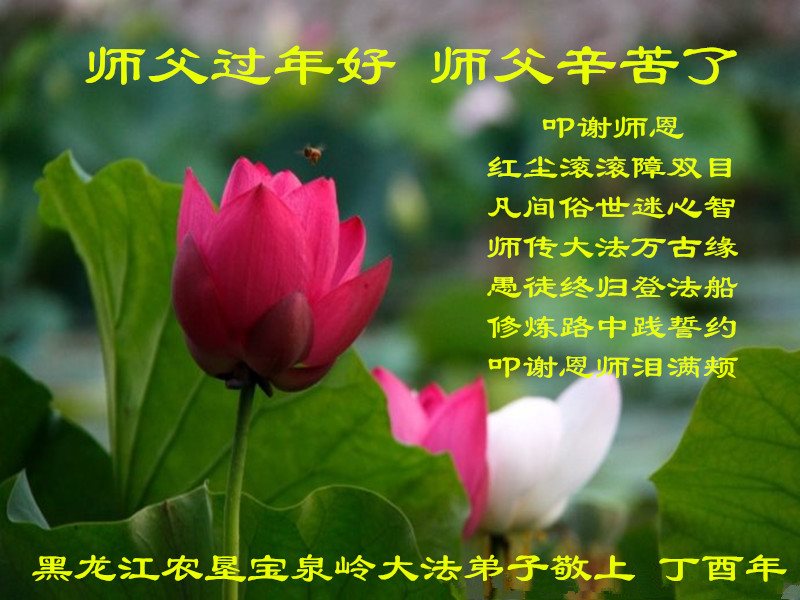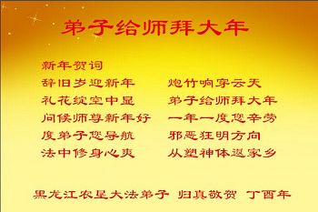 师父您辛苦了!不管多难我都会走好最后的路,跟师父回家!惟愿师尊笑! 黑龙江大庆油田采油十厂地区大法弟子恭祝师父新年快乐!弟子叩拜师尊!