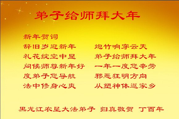 在新的一年中,我们一定听师父话,走正修炼的路,感恩师父的慈悲苦度! 快递行业大法弟子 丙申年丑月廿三 河北省石家庄商业系统大法弟子恭祝师尊新年快乐!