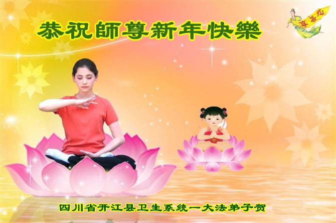 四川省达州市开江县卫生系统大法弟子恭祝慈悲伟大的师尊新年快乐!