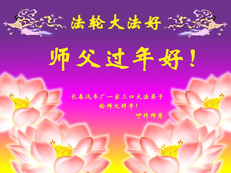 吉林省长春汽车厂一家三口大法弟子给师父拜年!叩拜师尊!