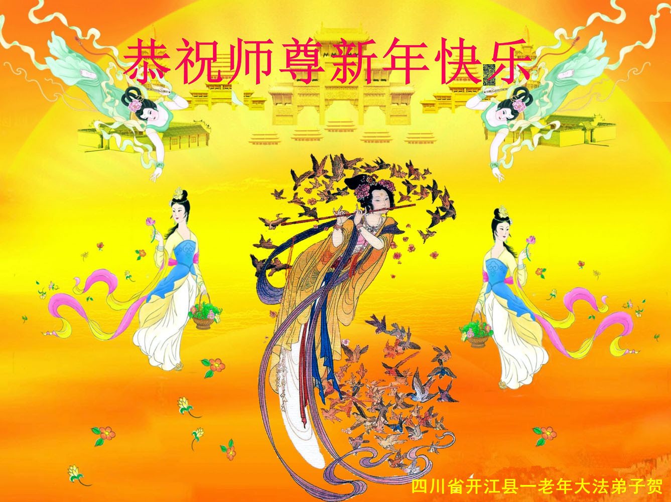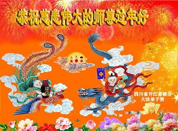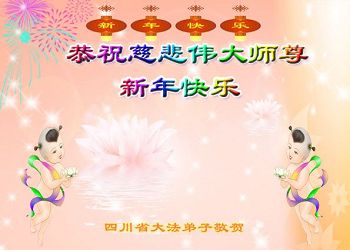 四川省大法弟子恭祝慈悲伟大师尊新年快乐!