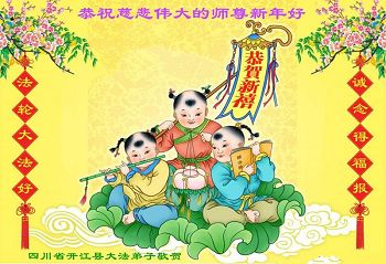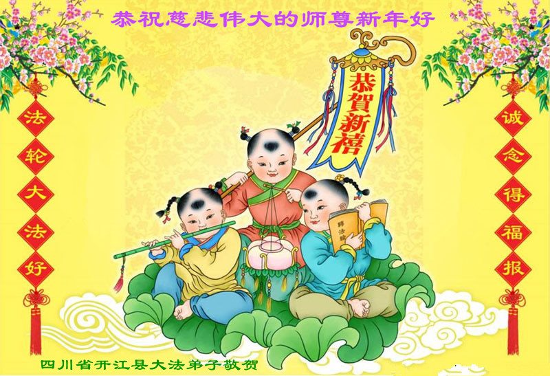 我们在新的一年里要更加精進,以法为师勇往直前,改掉不足之处,做好三件事,跟师父回家。 四川省达州市开江县全体大法弟子恭祝师父过年好!