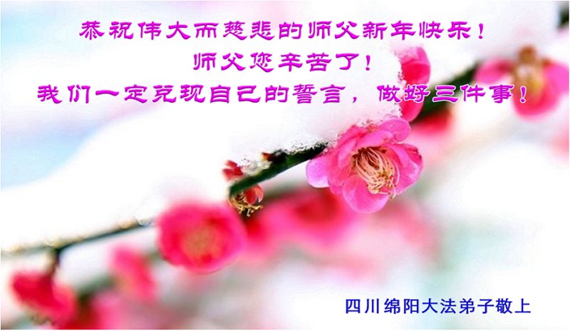 恭祝伟大而慈悲的师尊新年好!师父您辛苦了! 我们一定会兑现自己的誓言,做好三件事。 四川绵阳大法弟子敬上 四川米易全体大法弟子恭祝师尊新年快乐!