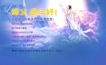 我仅代表我们学法小组的成员向慈悲的师父拜年了!师父过年好!您辛苦了!谢谢您的慈悲救度!谢谢您!我们一定在今后的修炼中走好最后的路,让师父少一份操劳,多一份欣慰。再次跪拜! 天津市蓟县一学法小组大法弟子祝师尊新年好!