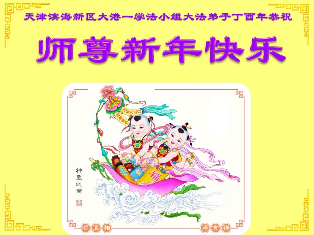 天津滨海新区大港大法弟子在丁酉年来临之际,恭祝师父新年快乐!弟子们会继续精進实修,做好大法弟子该做的事,救度众生,完成使命! 天津市全体大法弟子恭祝师父过年好!