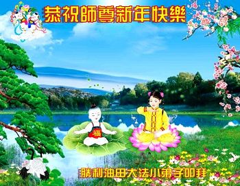 山东省淄博市一学法小组大法弟子及大法小弟子恭祝师尊新年快乐!