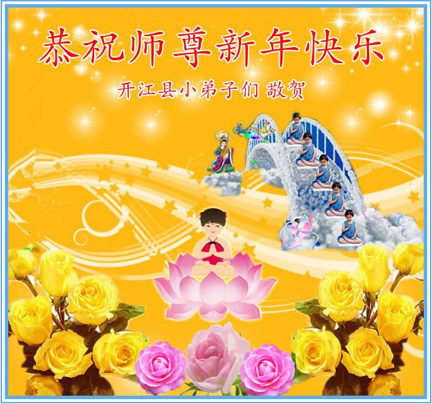 师父过年好!师父辛苦了!我现在六岁了,只是念,《洪吟》和《论语》我以后要多学法和炼功,做个大法小弟子。 四川省达州市开江县大法小弟子们恭祝师尊新年快乐!
