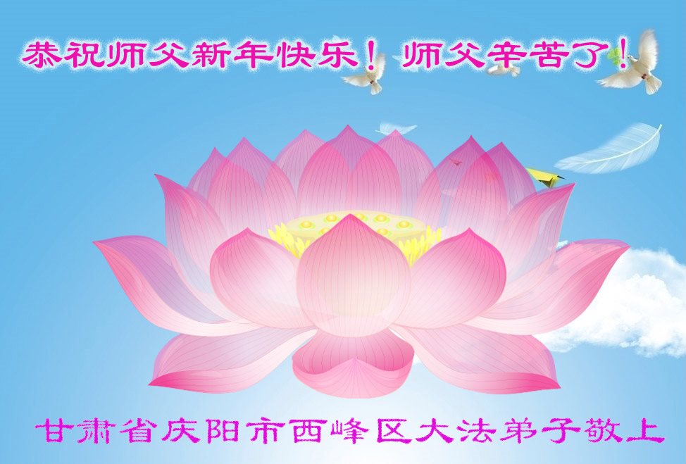 师父您辛苦了,弟子想念您,盼望您早日回大陆。师父谢谢您。 甘肃省庆阳市大法弟子恭祝师尊过年好!师父新年快乐!