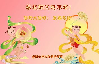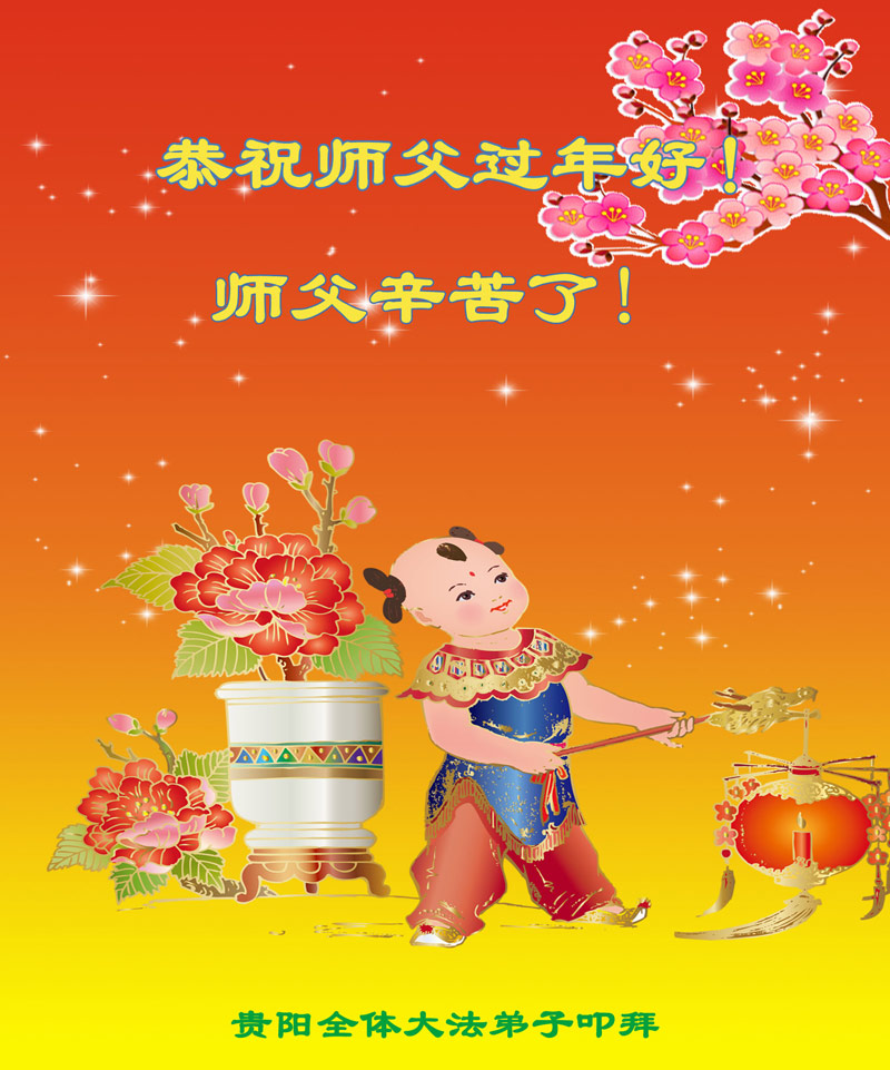 师尊您辛苦了!在新的一年,我们一定遵照师尊的要求,多学法,遇事向内找,做好三件事,跟师父回家。 贵州省全体大法弟子及其亲属给师尊拜年!