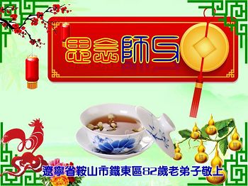 【明慧网二零一七年一月二十四日】 辽宁省鞍山市高新区一老年大法弟子恭祝师尊过年好!