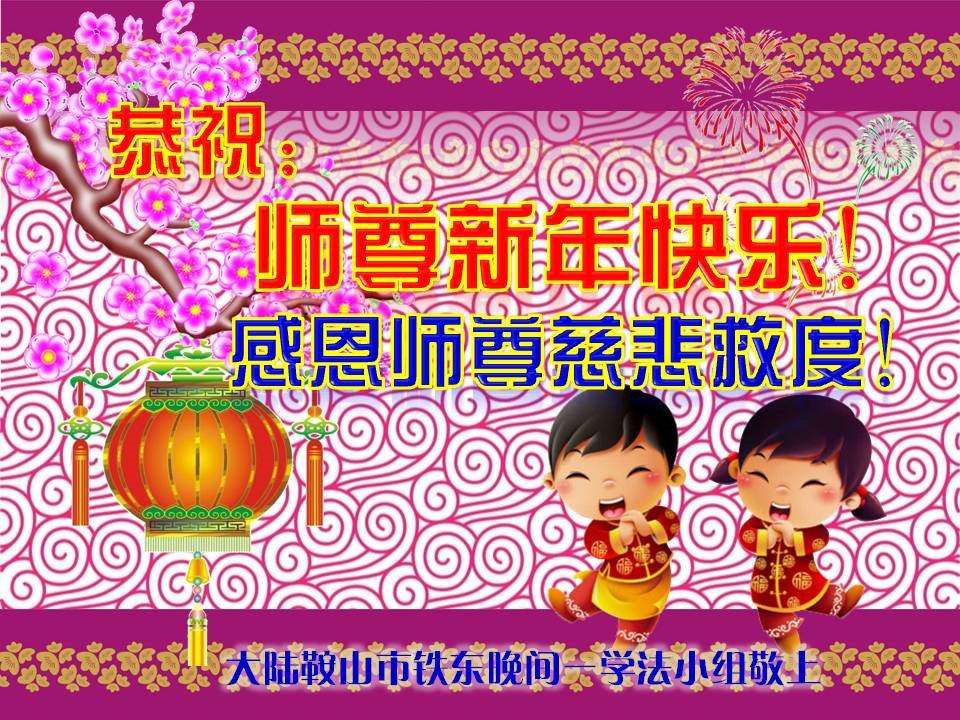 恭祝师尊新年快乐!感恩师尊慈悲救度! 大陆鞍山市铁东晚间一学法小组敬上 辽宁省鞍山市一大法弟子恭祝师尊过年好!