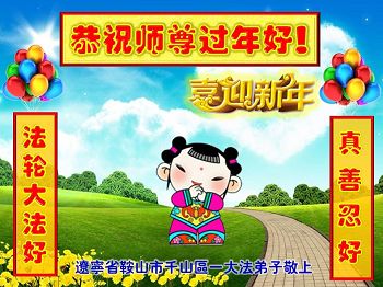 师父您好!过年了!您的弟子给您拜年了,感谢师父的呵护!坎坎坷坷走过了十八年至今,多亏师父的慈悲苦度,用尽人间的语言,千言万语也无法表达对师尊的感恩,只有做好三件事报答师恩,跟师父回到真正的家! 辽宁省鞍山市一资料点大法弟子恭祝师父新年快乐!