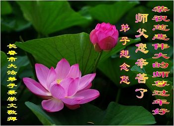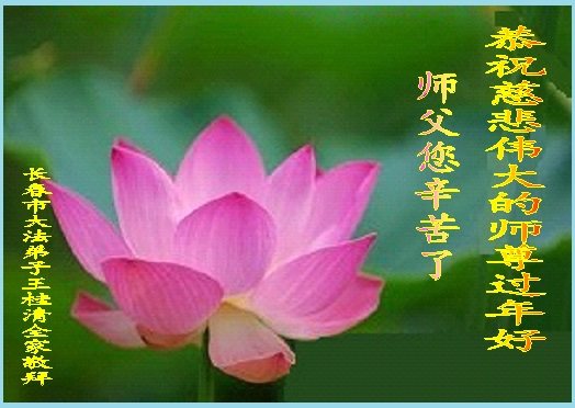 师父您辛苦了!感谢师尊的救度之恩! 在新的一年里,弟子们要牢记师尊的教诲,多学法,学好法,向内找,修好自己。抓紧时间多救人,做好三件事,整体提高,整体升华,正念正行,兑现誓约,跟师尊回家。不辜负师尊的慈悲苦度! 弟子向师尊敬拜 合十! 吉林省长春榆树市大法弟子恭祝慈悲伟大的师尊新年快乐!
