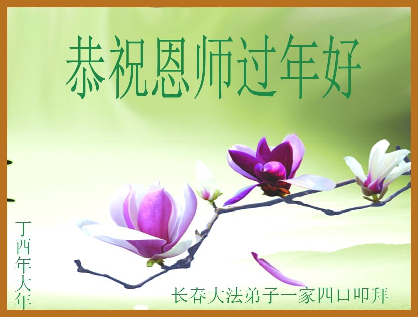 吉林省长春大法弟子一家四口恭祝师尊新年快乐!