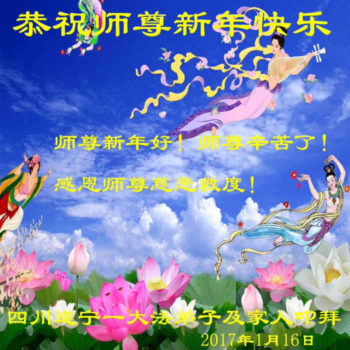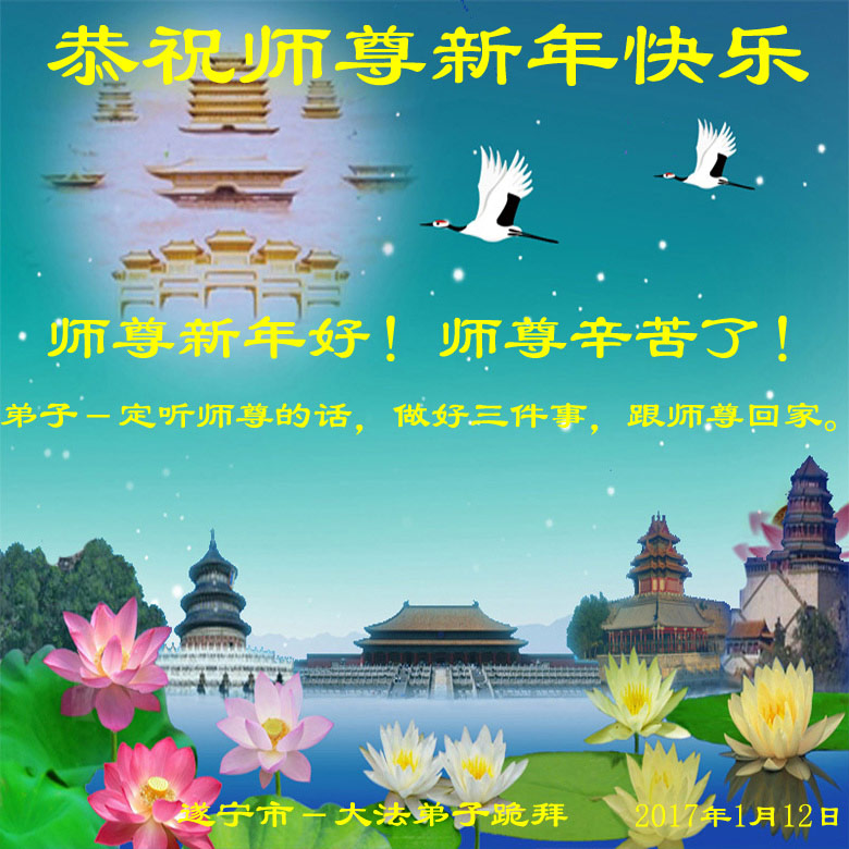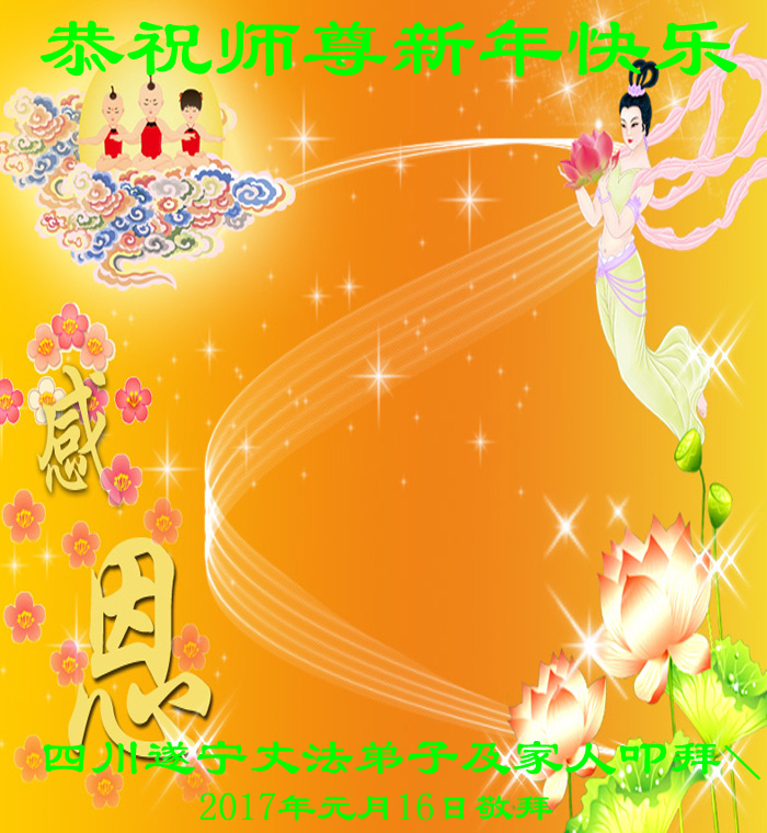 四川遂宁大法弟子及家人恭祝尊敬的师尊新年好!