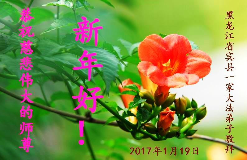 黑龙江省哈尔滨市宾县一家大法弟子恭祝师尊新年快乐!