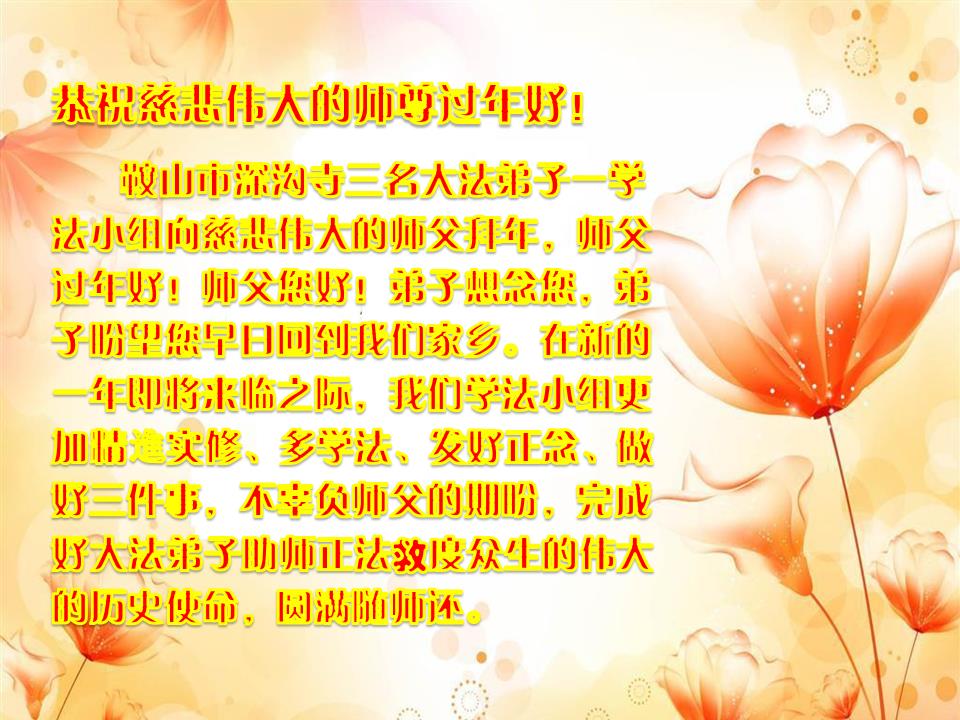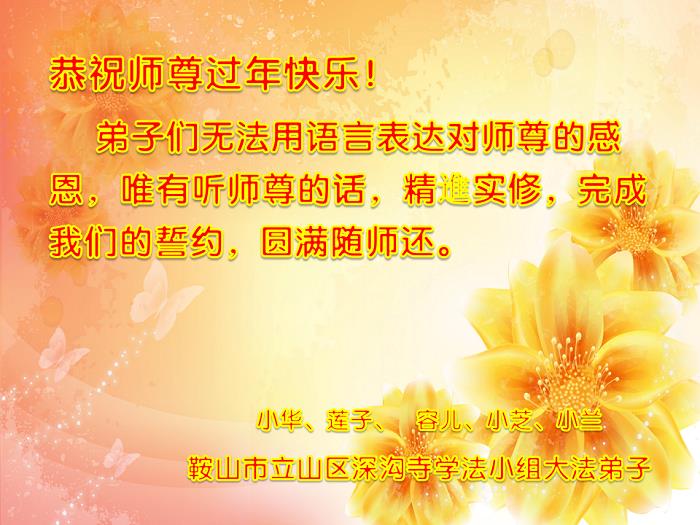 辽宁省鞍山大法弟子恭祝师父新年快乐!