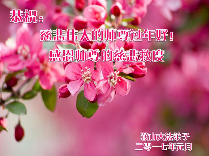 【明慧网二零一七年一月二十四日】 居住在山东省监狱家属院的大法弟子恭祝慈悲伟大的师尊新年佳节快乐!
