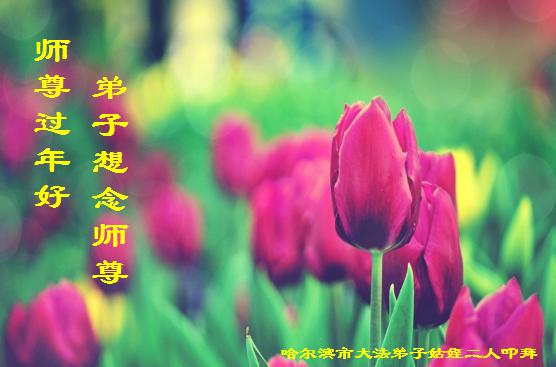 黑龙江省哈尔滨大法弟子姑侄二人恭祝师尊过年好!弟子们想念师尊!