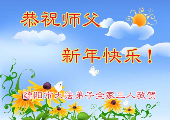 四川省绵阳市大法弟子全家三人恭祝师父新年快乐!